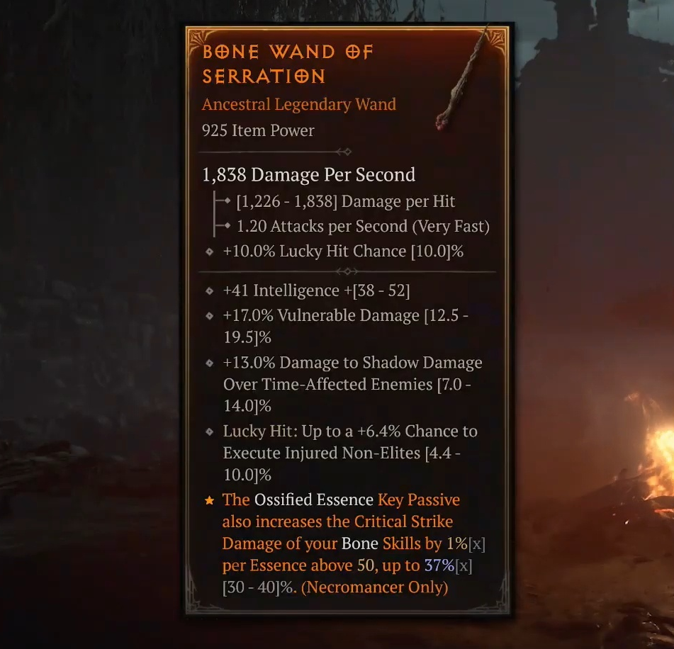 - A necromancer focussed on bone skills, specialising in critical hit chance and resource generation. So far, so good;