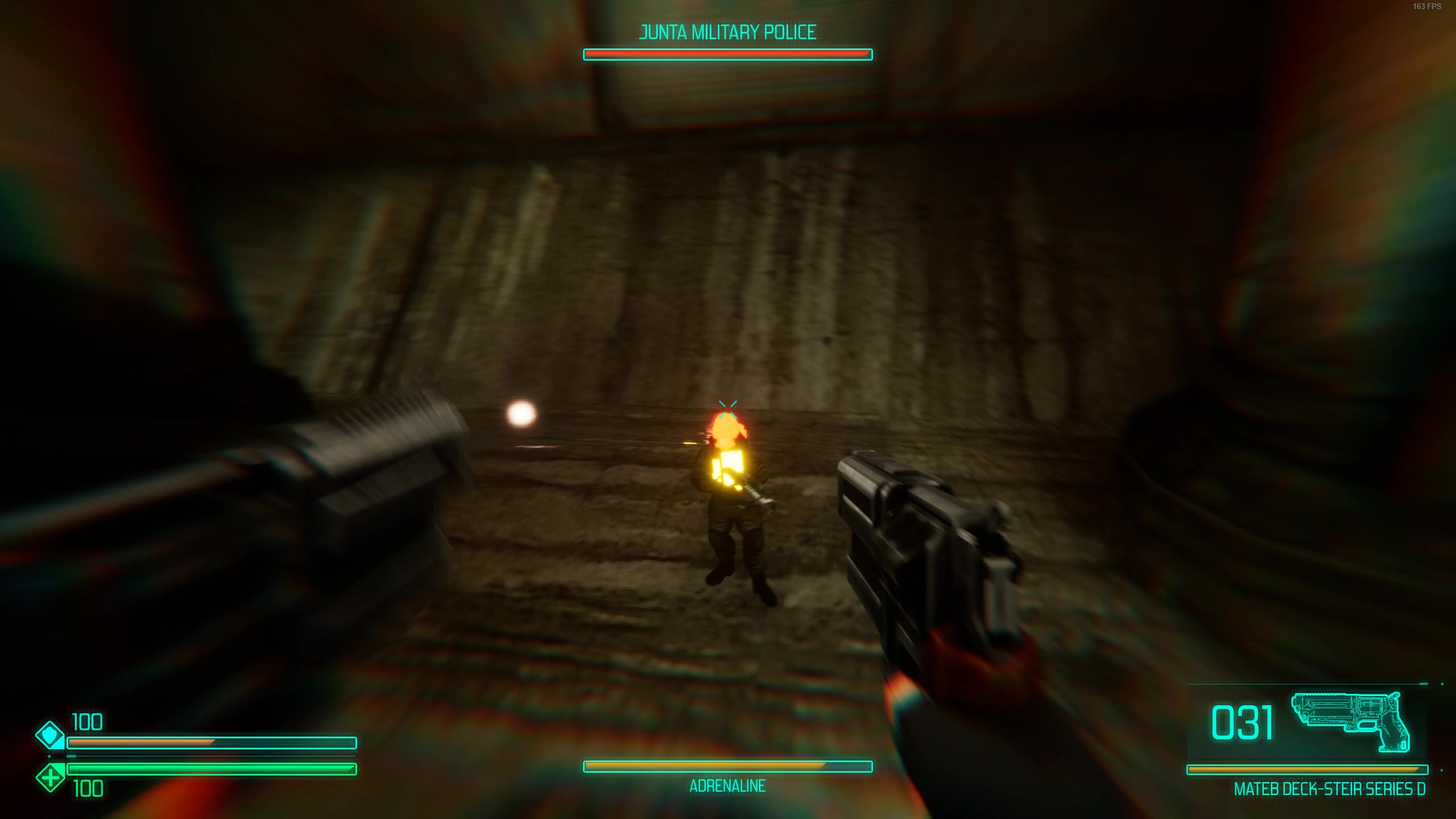 One enemy has a back backpack-looking thing, and occasionally explode. I’m going to say that the game deliberately wanted me to shoot them because they were highlighted, but found that most of the time when I shot the backpacks they’d never register. At other times they would trigger in instances where I wasn’t even aiming at the highlights. Another enemy has a hood, and that lights up like a glowstick, but I’d empty an entire SMG clip into their face and they’d completely ignore it. The result is that the game seemed give me mixed signals as to what it wanted me to do. Whether that was bad hit detection or delay/miss owing to projectile physics, I couldn’t say. Ultimately predicting the outcome of any given shot is, ironically, hit and miss.