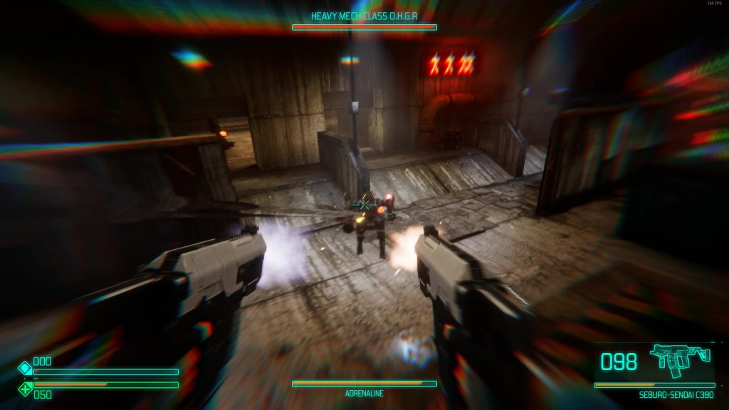 To put a final nail in my disappointment with how uncomfortable the combat system in Sprawl is, the developers went out of their way to ensure that enemies are massive bullet sponges. This is to get you to engage with the Doom-style glory kill mechanics, but it just doesn’t work here. You can empty an entire SMG into a basic goon and they won’t flinch. Shooting the orange bits or don’t shoot at all. If you don’t go all-heads-all-the-time, then you will just run out of ammo.